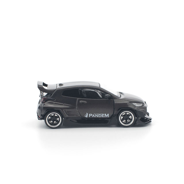 ●PANDEM仕様のGRヤリスが、カーボンファイバー調の外装をまとった「CARBON EDITION」として登場。ボディ全体を覆うカーボンテクスチャが独特の存在感を放ち、コレクションを一段と引き立てます。