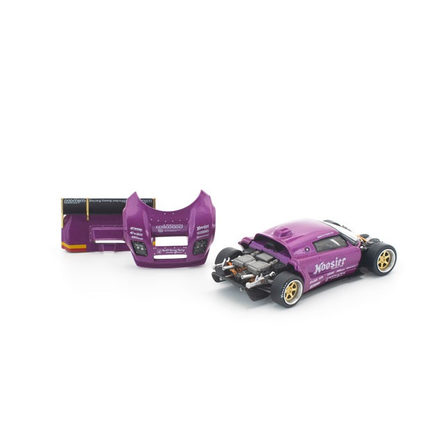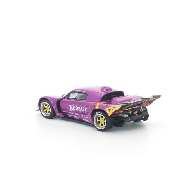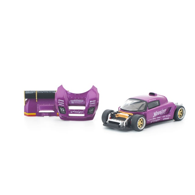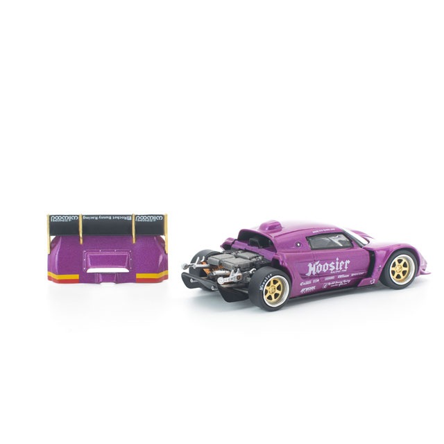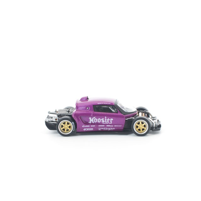 ●コンパクトな欧州スポーツカーをハイパワーな競技マシンへと昇華させる、PANDEMならではのチューニング哲学を体現した「PANDEM LOTUS ELISE」を、POP RACEが新金型で1/64スケール化。迫力あるエアロをまとったパープルボディは、フロント&リアのボディパーツ脱着が可能で、内部には精密なエンジンディテールを再現。さらに、ゴールドアクセントの大型リアスポイラーとツートーンホイールが、コンパクトながらアグレッシブな存在感を際立たせます。PANDEMの世界観を凝縮した、チューニングカー好き必携の一台です。