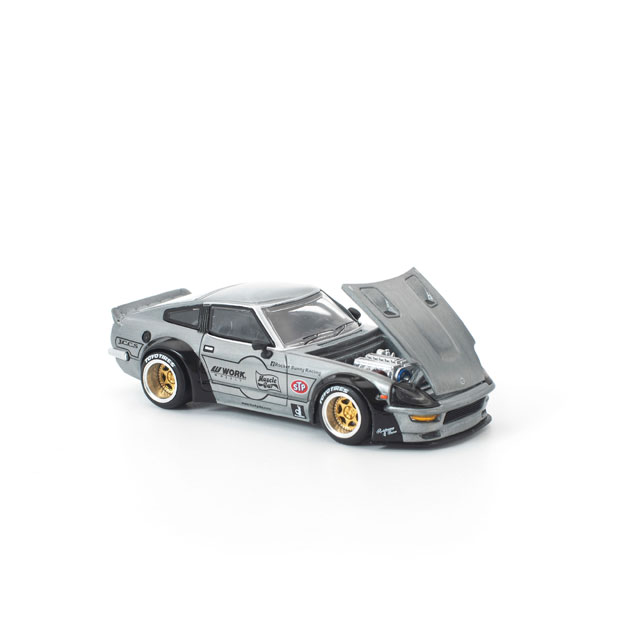 ●アイコニックな280ZXの流麗なボディラインとアグレッシブなスタンスに、無骨な存在感を放つローメタルフィニッシュを施した特別仕様が登場。金属感を強調したスムーズな仕上がりが、PANDEMワイドボディの迫力を一層引き立てます。開閉可能なフロントフードを備え、内部には精密に再現されたエンジンディテールを搭載。メカニカルな魅力を存分に堪能できるコレクター必携の一台です。※本製品はライセンサー監修のもと開発中のため、仕様および細部は予告なく変更となる場合があります。